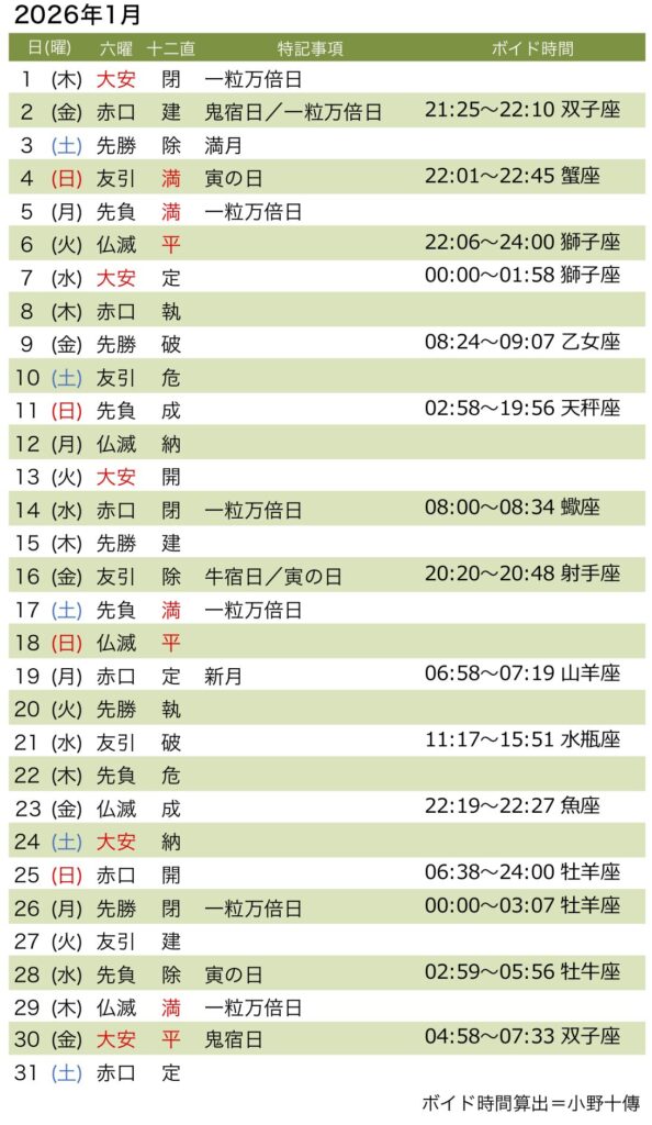 ◆六曜(ろくよう)