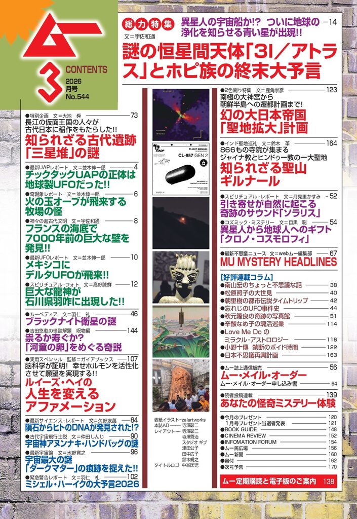 <新刊>総力特集 謎の恒星間天体「3I/アトラス」とホピ族の終末大予言/ムー2026年3月号のお知らせ