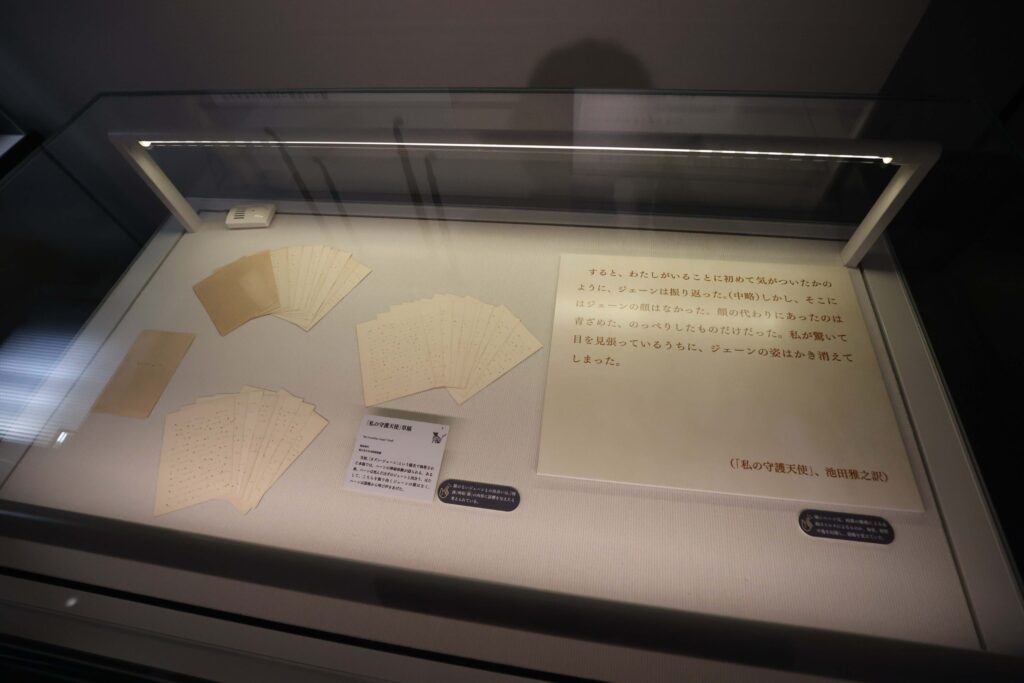展示では、幼少期の神秘体験を記した草稿「私の守護天使」(明治時代)も公開されていた。顔のない少女ジェーン(のっぺらぼう)の幻視体験がつづられたこの草稿は、後の怪談文学につながる原点として紹介されている。