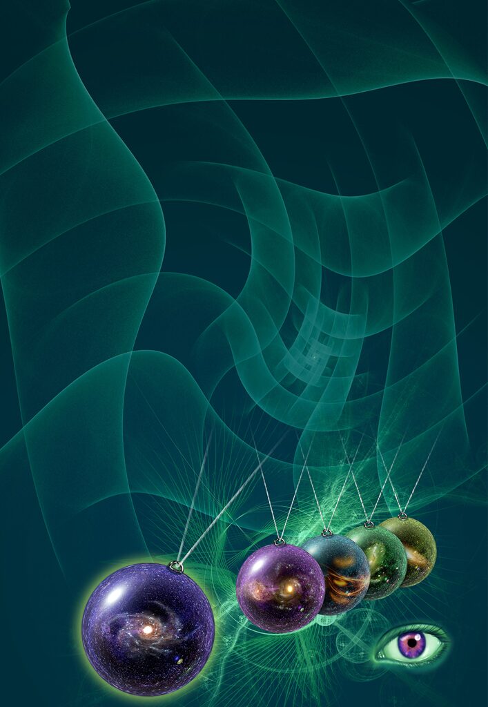 そんな所から今回はそれぞれ別の宇宙が入った振り子をイメージして描いてみました。