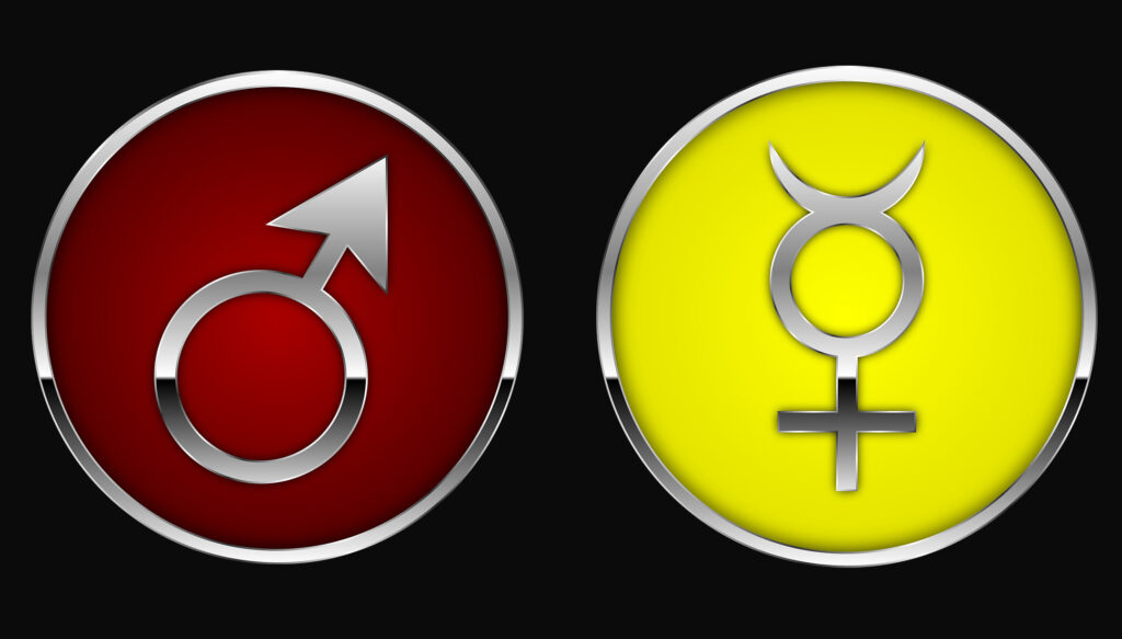 勢いやテンポの火星(♂)と、言葉の水星(☿)が漫才のシンボルといえる。