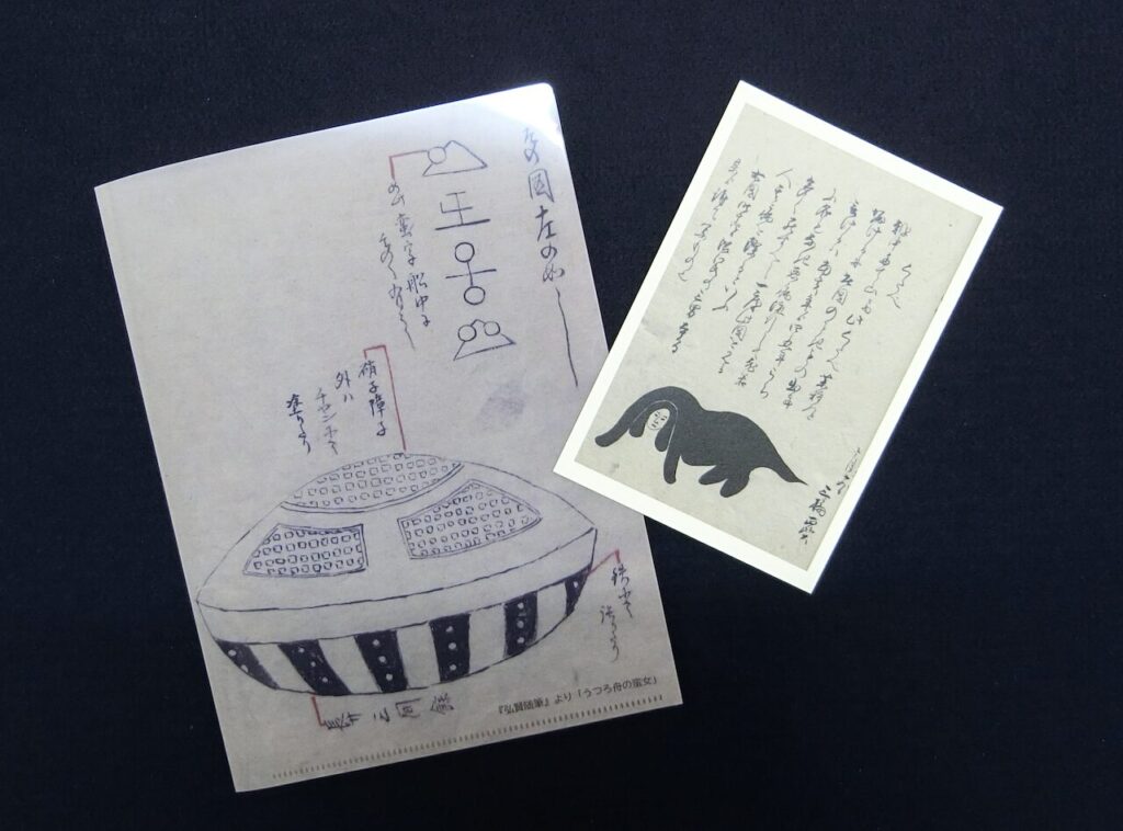 これまでは主に教科書にでてくるような有名な資料やきれいな植物の絵などを選んでいたのだが、今年度の新作をつくるにあたって「なにかいいネタないですか?」と職員アンケートをとったところ、うつろ舟図はどうだろうかとの提案が。