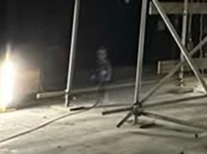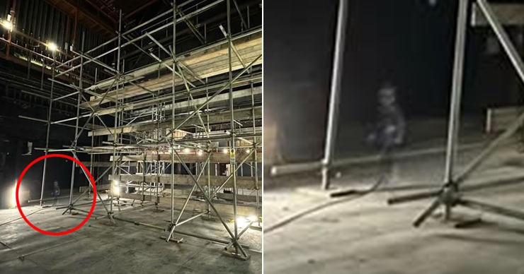 写真を撮影したのは、現在劇場の改修工事を請け負っている業者だという。舞台裏に組まれた足場を写した、何気ない1枚。しかし、その左下隅に目を凝らすと、説明のつかない“人影”の存在に気づかされる。