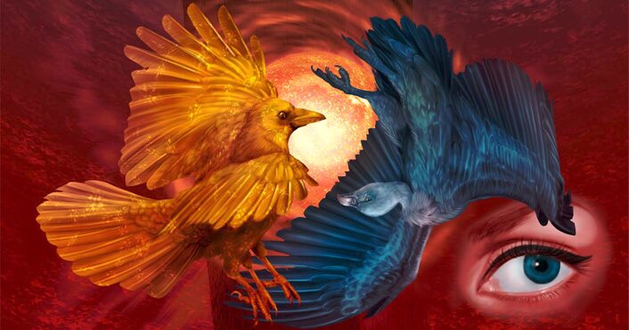 ギョベクリ・テペからは10トン以上もあるT字形石柱が発掘されているのですが、その中にハゲワシが玉を持つ様子が描かれたものがあり、それは天体を表した図で玉は北極星ではないか?と言う説があるそうです。そこから今回は太陽を表す金烏と、夜の太陽とも言われる北極星をイメージしたハゲワシで陰陽をイメージして描いてみました。背景には薄っすらとT字形石柱を描いています。