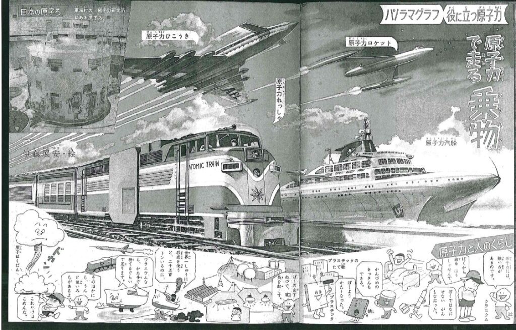 「動く原子炉」であることは「ゴジラ」と変わらないのだが、被爆や空襲の記憶など、敗戦の悪夢を煮しめたような「水爆大怪獣」とは違い、こちらの「動く原子炉」は「核の平和利用」を前提とした輝かしい「未来の希望」を老若男女に広く周知したのだ。