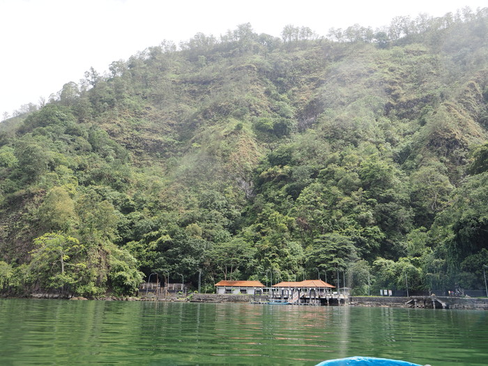 対岸の船着き場からボートに乗る。ちなみに、この船着き場がある町は町中ハエだらけだった。駐車場の車や家の壁などにもハエがびっしり貼り付いていた。聞けば湖で獲れる魚をあちこちに放置しているからだ、とのこと。