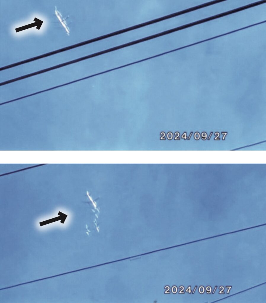 すると一瞬、別のものが写っており困惑しましたが、よく見ると2枚とも飛行機が分裂しているように見えました。