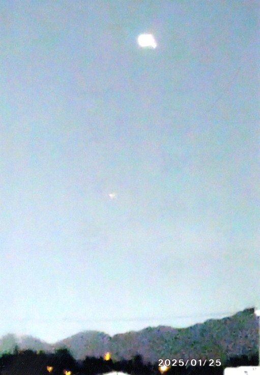 また、次の写真は令和7年1月17日(金)18時54分、自宅付近で、同じような違和感のある物体を撮影したものです。
