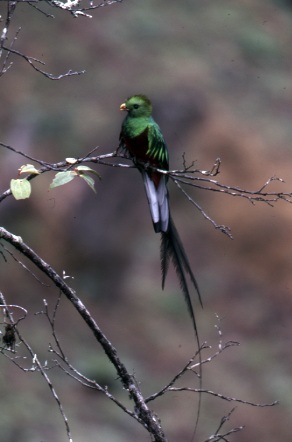 ケツァルコアトルの「鳥」の部分を構成するケツァール。中米の一部に生息する希少な鳥で、胸の赤い羽毛は、侵略者たちに虐殺されたマヤ人たちの血で染まったという伝説がある。