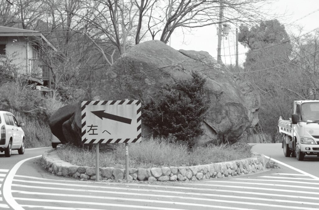 甲山のあたりに道路の真ん中にもかかわらず岩がある。この岩はかつて工事で取りのぞこうとした際、工事関係者が次々とケガをしたり亡くなったりしたため、結局そのままにされたといういわくつきの岩だといわれている。ある夜、バイクに乗った若者たちがこの岩を蹴ったり、岩の周りで騒がしくしたりしたところ、遠くから獣のような女が追いかけてきた。若者たちは慌てて逃げたが、ひとりが転倒し、そのまま次々と事故が起きて全員死亡したという。ちなみにこの岩は「夫婦岩」という岩で、実在する。