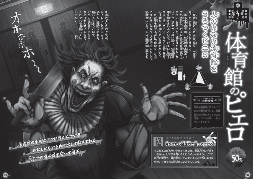 小学校のトイレや図書室または体育館などに、無気味なピエロが出没する……。こうした「学校の怪談」は、トイレの花子さんほどメジャーではないものの、全国にそれなりに広まっていた。
