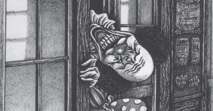 ひっくり返った頭のまま、ピエロはこちらに目を合わせ、ニヤリと笑った。