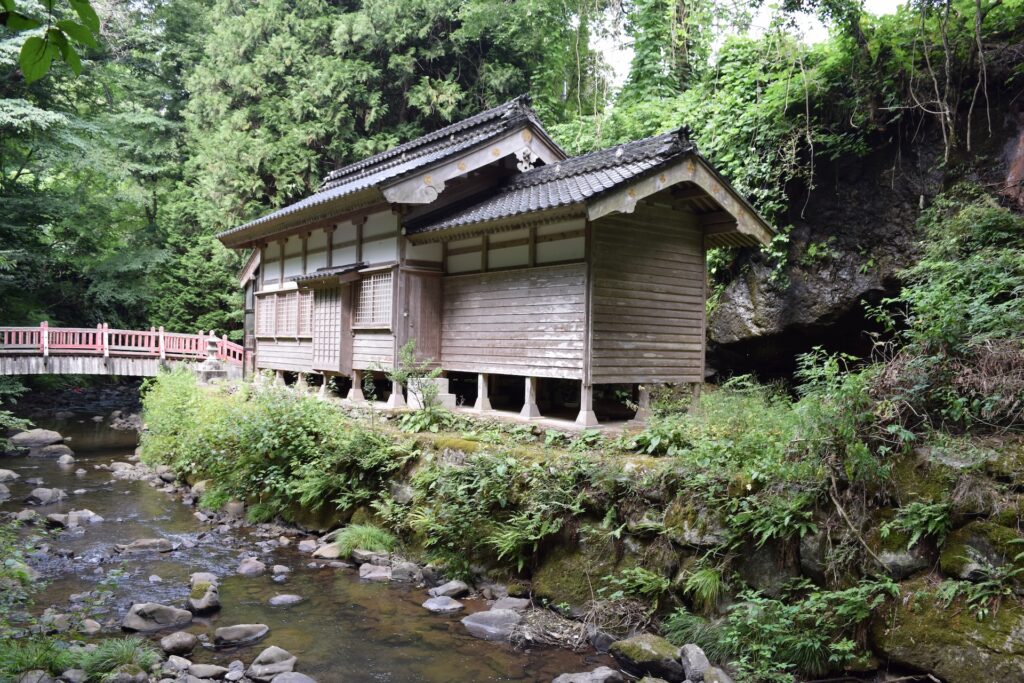 その能登町の当目には、岩井戸神社が建っている。ここも山深い場所で、輪島市との境に近い。この岩井戸神社の境内に岩屋堂と呼ばれる洞窟がある。この洞窟は能登半島の北側、日本海と繋がっているといわれ、内部で潮の干満があり、イカが浮かんでくることもあったと伝えられる。