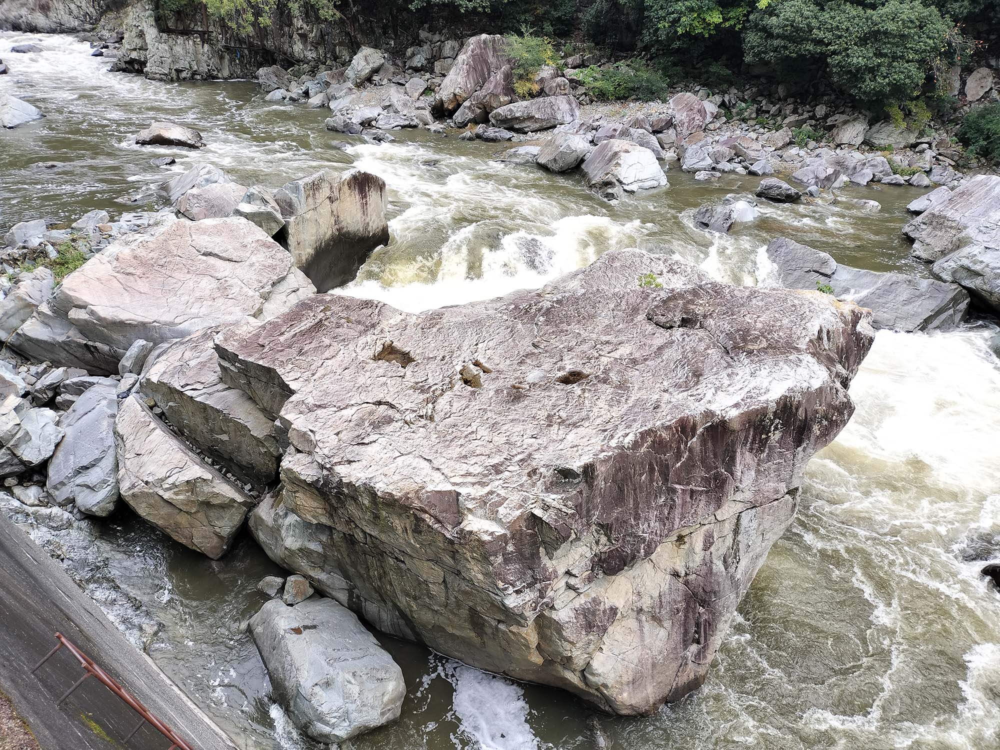 「この岩は龍宮につながっているという伝説がありまして。竜宮の乙姫はきれい好きなので、あえてこの岩を白馬の血で汚し、雨を降らせていたそうです」