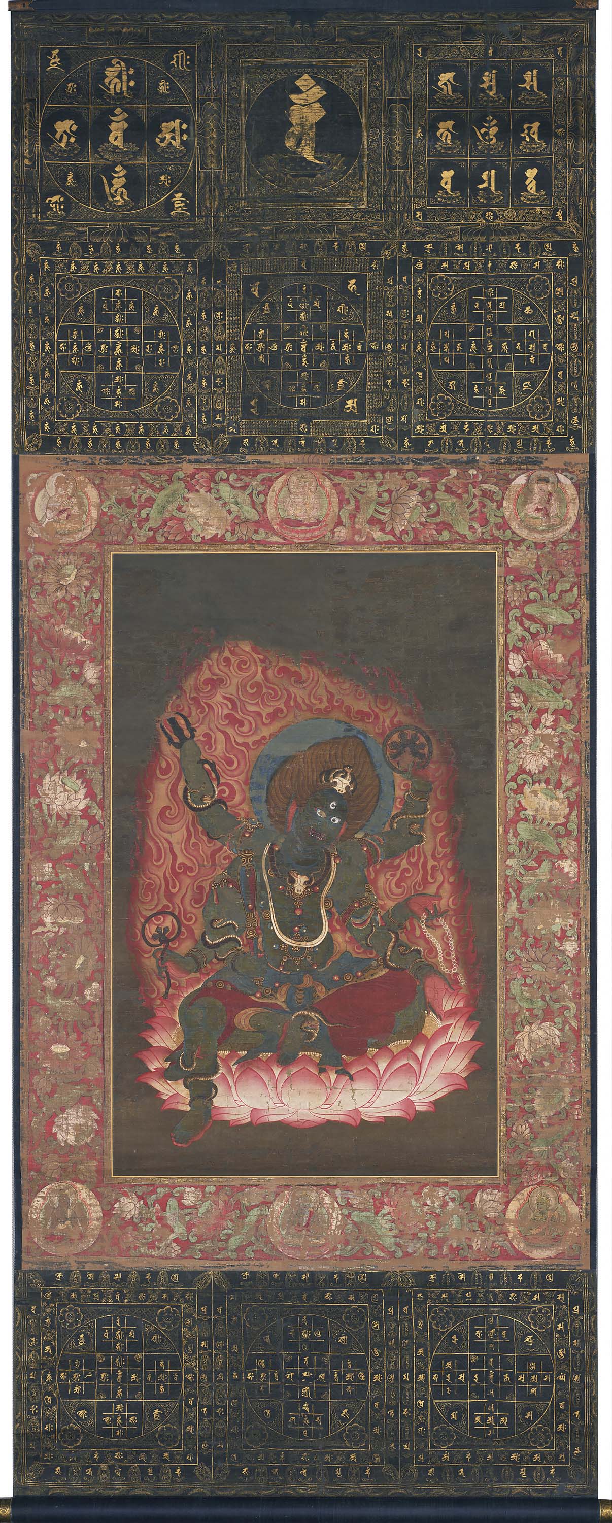 代表的な「九重守経」では、巻首に烏枢沙摩明王とその真言を置く。トイレの神様としても知られるように、不浄を祓い清めるのがこの明王だ。悪しきものを退け、憑きもの落としにも効果ありと期待されたのだろう。