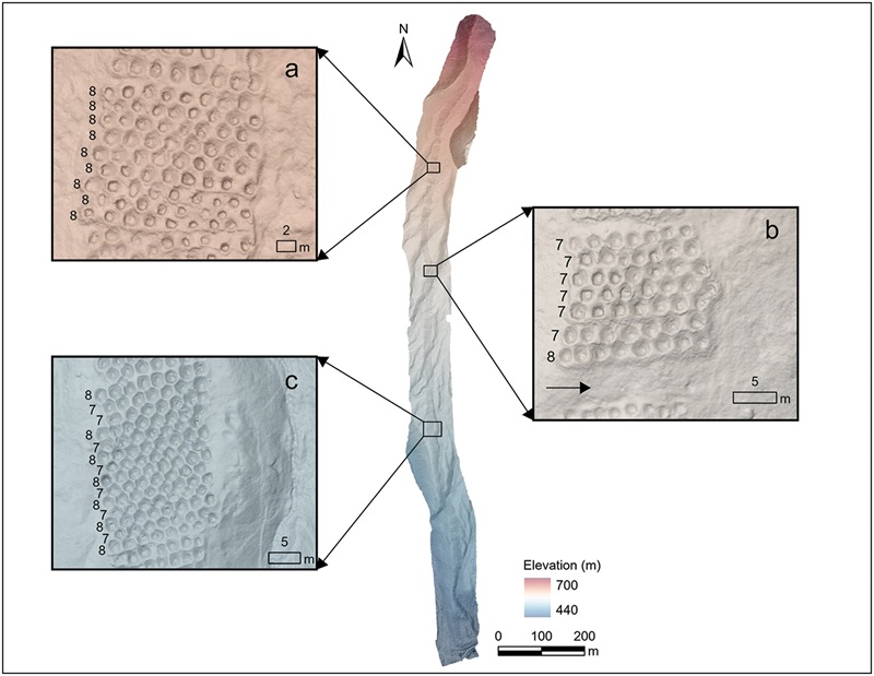 モンテ・シエルペのそれぞれの穴は幅1~2メートル、深さ0.5~1メートルで、配置には明確なパターンがある。たとえば特定のセクションでは9列連続で8個の穴があり、別のセクションでは7個と8個の穴が交互に並んでいるのだ。