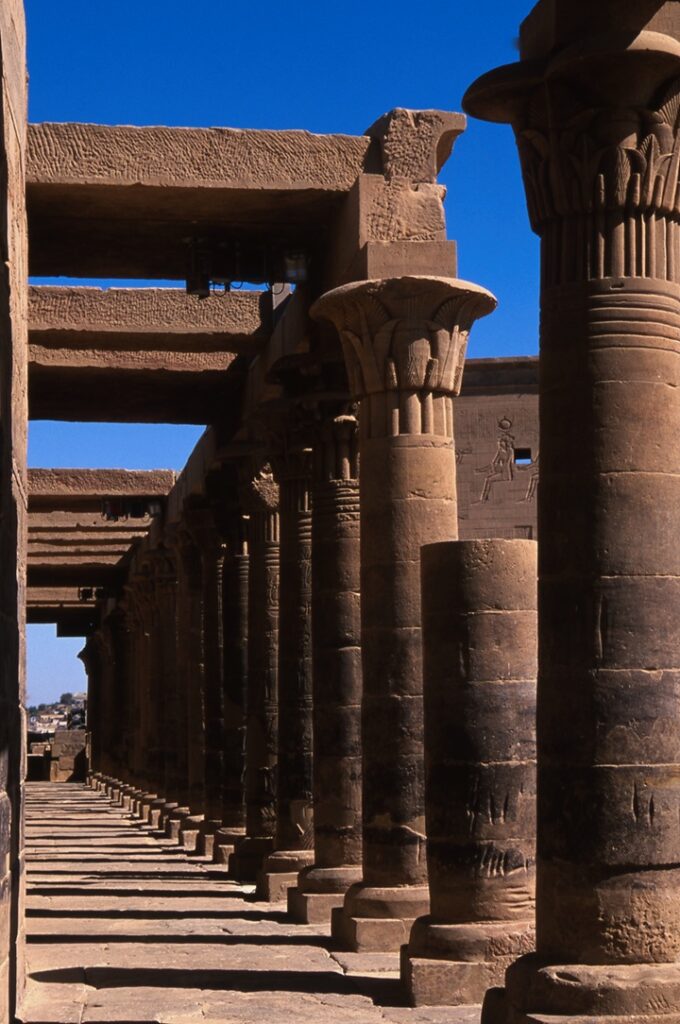 フィラエ島はイシスがホルスを生んだ聖なる島として、イシス神信仰の中心地であった。島には末期王朝時代からローマ帝国時代にかけて、さまざまな神殿や建物が建てられたが、中でも見事なのがイシス神殿である。
