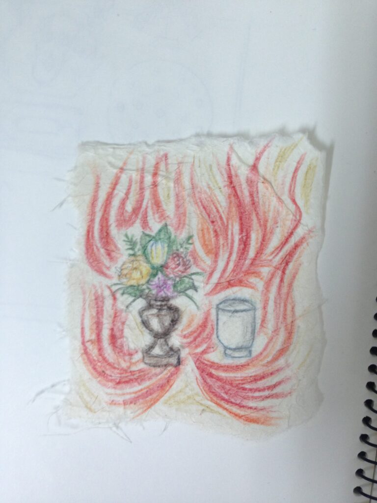 相蘇氏は西側に面して「六道の火」と「花四本」を描いた絵を供えた。その後ろには菩提寺の土を入れた箱に、相手の名を書いた名札をたてかけている。そして「おのれのみ天の逆手を打つたびに降り敷く木の葉跡だにもなし」と唱え、裏柏手を3度打つ。あとは箱に蓋をすれば呪殺の完成だ。