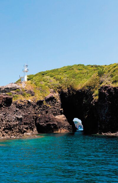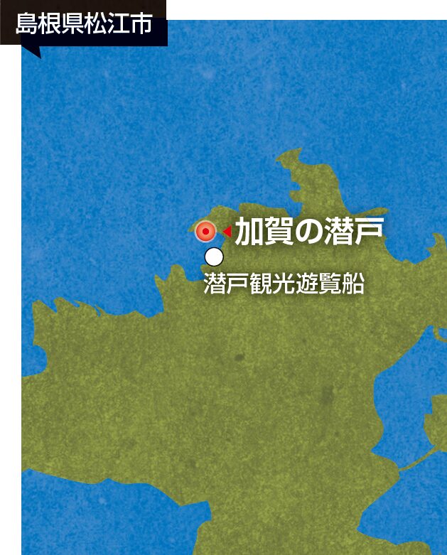 その松江のなかでも、八雲が強く心惹かれたのが、日本海に面した加賀港沖の岬にある洞窟、「加賀の潜戸(かかのくけど)」だ。1891年9月に、妻のセツとともにこの地を訪れた八雲は、著作『知られぬ日本の面影』でこう記している。