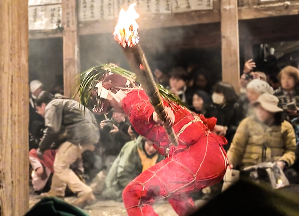 ほんの4時間前にはこんな光景を目の当たりにするとは思っていなかった。節分のお祭り――そんな甘いものではない。この令和の時代に、鬼に追われ、松明でリアルに燃やされるなんて……!