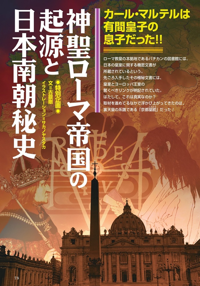 ローマ教皇の本拠地であるバチカンの図書館には、日本の皇室に関する機密文書が所蔵されているという。先ごろ入手した、その極秘文書には、皇室とヨーロッパ王室の驚くべきリンクが明記されていた。はたして、これは事実なのか。取材を進めてるなかで浮かび上がってきたのは、裏天皇の系譜である「京都皇統」だった!!