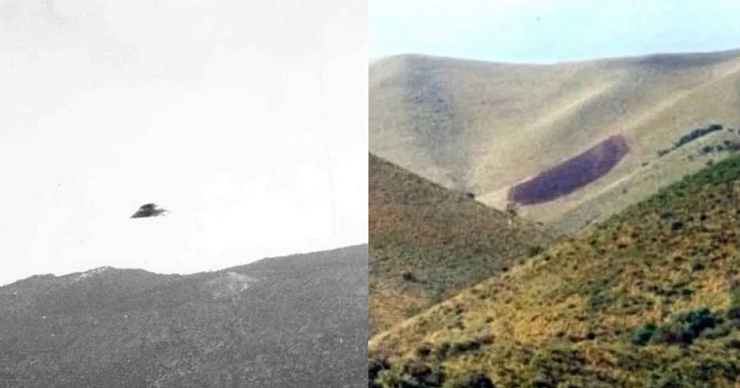 翌日、一家の息子は仕事を終えて農場へと車で戻る途中、丘の南東斜面に奇妙な黒い斑点があることに気づいた。彼は家族にそのことを伝え、その翌日、父親と息子がその現場に行ってみると、直径100メートルほどの大きな楕円形の焦げ目の跡があったのだ。巨大で高温のUFOが着陸した跡なのか。