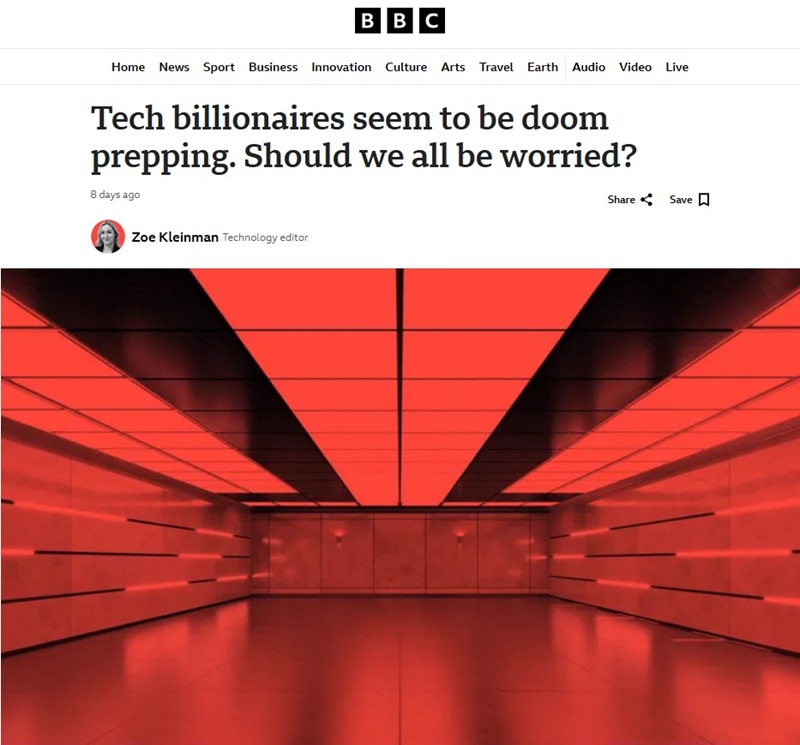 テクノロジーの最先端を知る彼らは、いったいなにをそこまで恐れているのか。戦争や気候変動の影響、あるいは彼らしか知らない別の大惨事に備えているのだろうか?