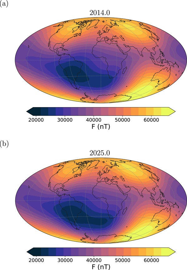 地球の磁場が著しく弱い領域である「南大西洋異常帯(South Atlantic An、SAA)」は、南米とアフリカにまたがる範囲に広がっていることが19世紀に判明している。この領域では、地球を取り巻く放射線帯(ヴァン・アレン帯)の高度が低くなっており、同領域を通過する人工衛星や国際宇宙ステーション(ISS)が通常よりも多くの高エネルギー粒子に晒されてしまう。そのため、機器の故障や誤作動を引き起こす可能性が高まるのだ。