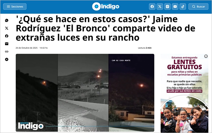 「ヌエボ・レオン州の元知事ハイメ・ロドリゲス(エル・ブロンコ)が、自身の公式フェイスブックにオレンジ色のオーブを捉えた印象的な映像を投稿した」