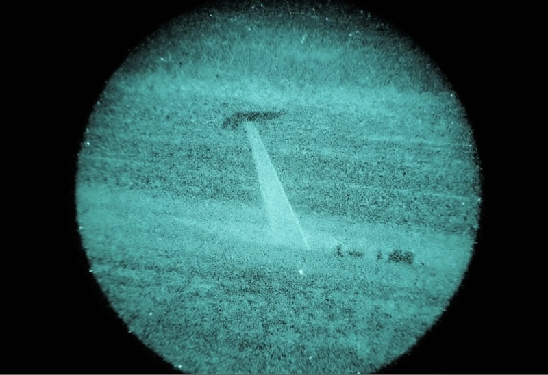 そこに映っているのは、一見したところ「UFOにしか見えない」航空機だ。レーダーテストの最中だろうか、謎の航空機は白い柱の上に乗せられているのだが、この白い柱がたしかにUFOから放たれた光線のように見えるではないか。