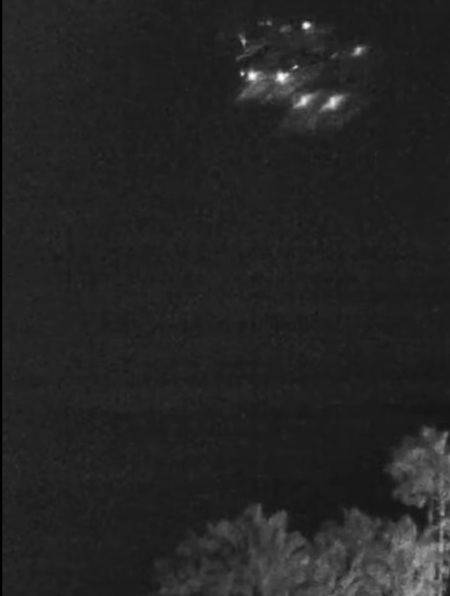 12月4日、午前4時46分頃。半透明かつぼんやりと光る円盤状の物体が2つ、並行して静かに夜空を移動していた。2体はしばらく点滅を繰り返した後、ふっと暗闇に消えてしまうのだが、直後になんと今度は大量のUFOの群れがギラギラと強烈な光を放ちながら現れたではないか!