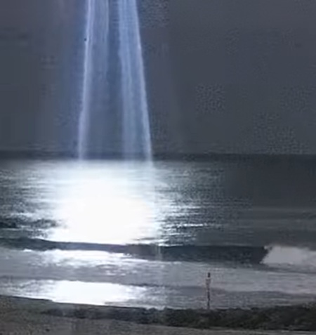 また、サーフラインは別の画角からの映像も公開しており、そこには画面外(上空)から降り注ぐUFOの光に照らされた海面の様子が映っている。強烈な光量で、まるでサーチライトを当てられているかのような明るさだ。いったい飛行物体はなんだったのか?