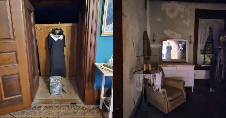 そんなウィルソン城で撮られたという、身も凍るような写真が城の公式Facebookで公開された。問題の1枚が撮影されたのは昨年夏、エイミーという女性が参加した調査ツアーでのこと。エイミーは城の中のとある部屋で、そこに飾られた黒い喪服を写真に収めた。それは、かねてより「人知を超えた力が宿る」との噂が絶えない“いわくつき”の展示物だ。