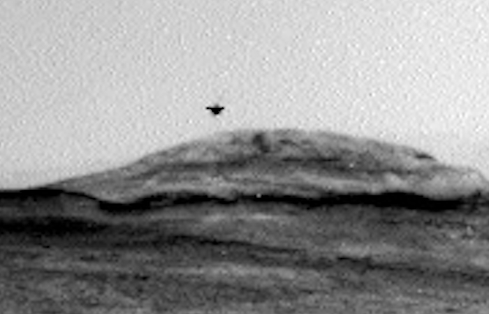 拡大してみると、それは円盤を上下から半球状の構造で挟んだような、クラシカルかつ典型的なUFOのシルエットではないか。発見されるや否や、画像は瞬く間に世界中のネットユーザーに共有された。画像の掲載元がNASAの公式サイトであり、しかも撮影された場所が火星だという事実も拡散に一役買ったに違いない。