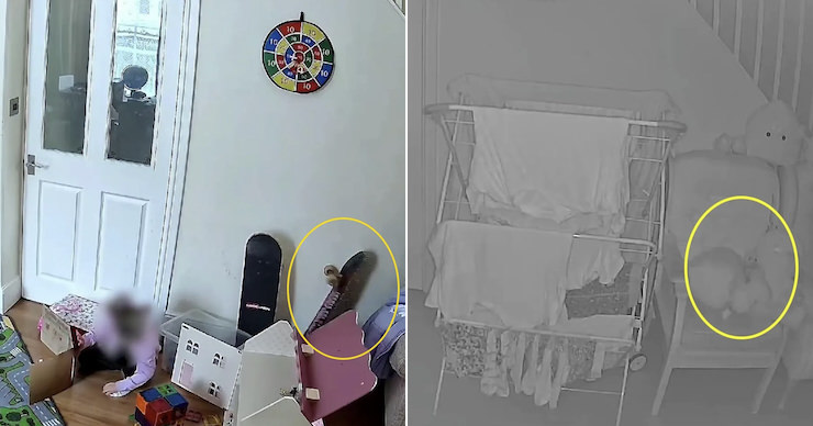 するとそこには、娘が床で遊んでいる最中、近くに置いてあったおもちゃが突然転がり出す様子や、壁に立てかけてあったスケートボードが自然に倒れる光景が記録されていた。驚いた娘は、「誰かが一緒に部屋にいたに違いない」と訴えたという。