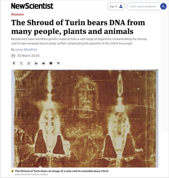 真贋論争が尽きない「トリノの聖骸布」に新事実! DNA検査の結果、使われている糸にはインド系血統のDNAが付着していたことが判明した。