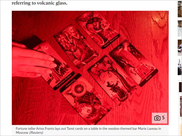 同じくモスクワで、クリスタルやタロットなどの魔術用品や、空気を浄化したり幸運を招くための香などを販売する「ウィッチ・ストア」も売上を伸ばしたという。店の経営者は、「安全の石とされる黒曜石の玉は、最近とても人気があります」と語っている。ほかにも水晶玉や護符は昨年比で2倍、持ち主を悪霊から守るポプラの杭の4倍の売上を記録したという。