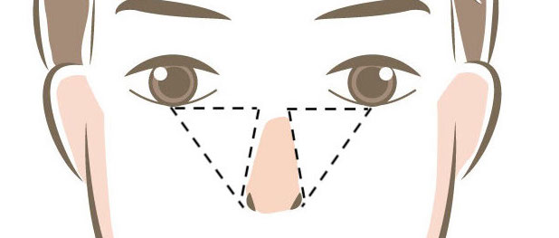 (2)瞳と小鼻を結んだラインの内側の三角地帯。ツキと人気が得られる。