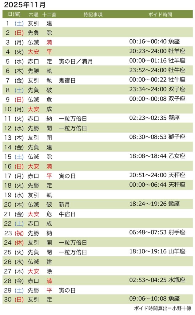 2025年11月のラッキーデーがわかる! 大安などの吉日のほか、宝くじ購入によいとされる一粒万倍日や天赦日、金運にツキのある寅の日などをご案内。