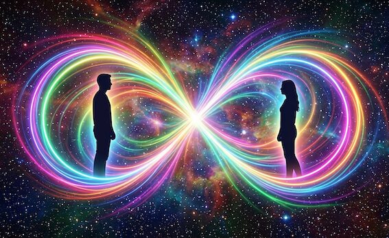⑨メビウスの輪を循環するエネルギーは、どんどん加速し、輝きを増していきます。やがてふたりのエネルギーがひとつの光となり、溶けあっていきます。